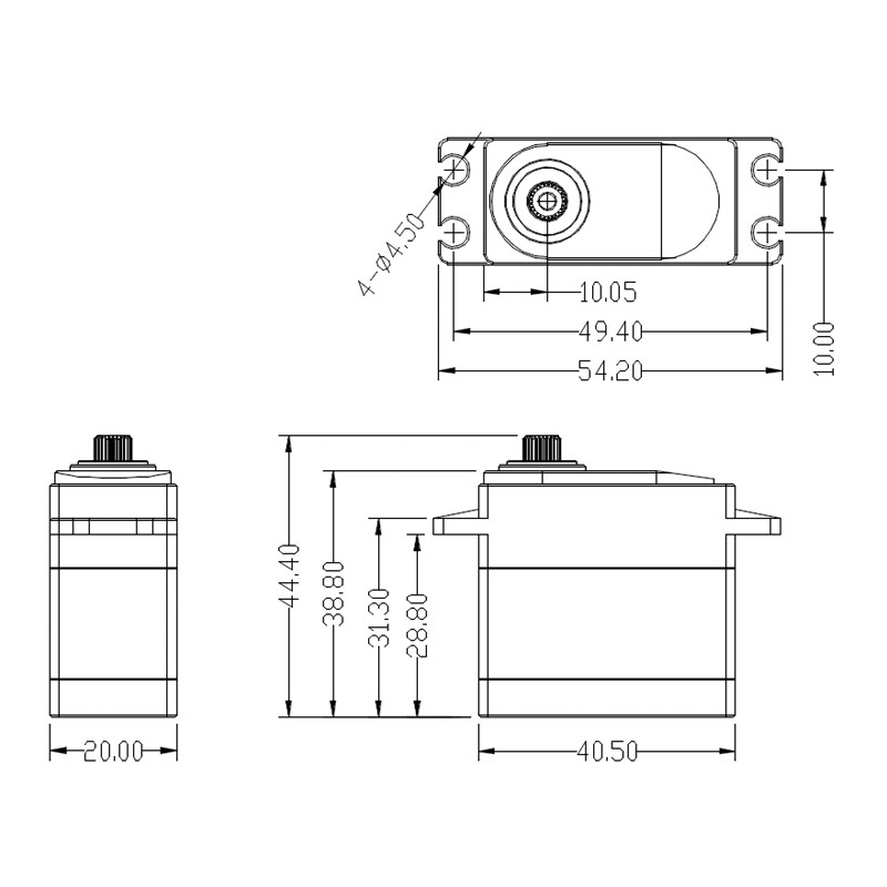 Rated working torque(6.0V):10.0kg.cm(138.90oz/in)
