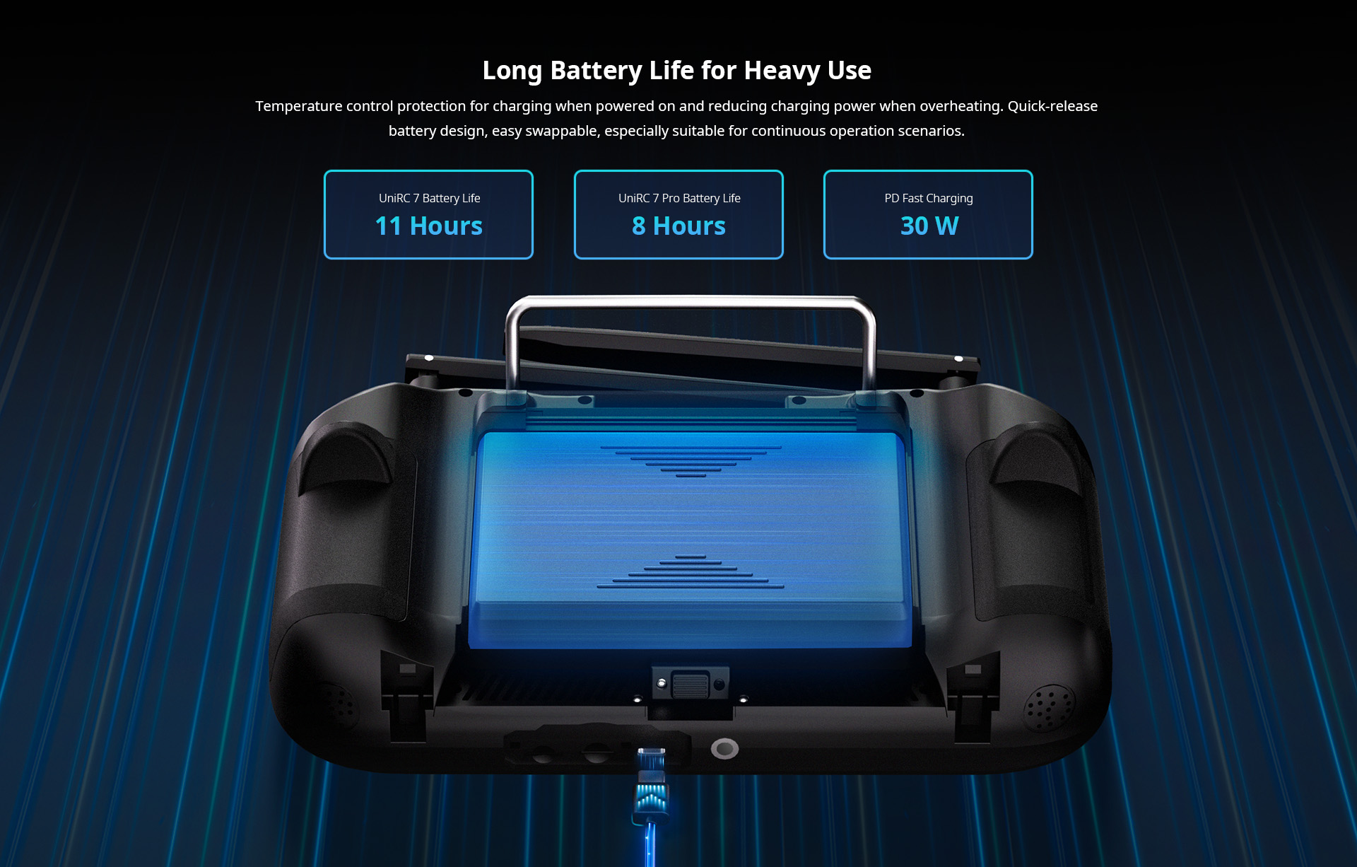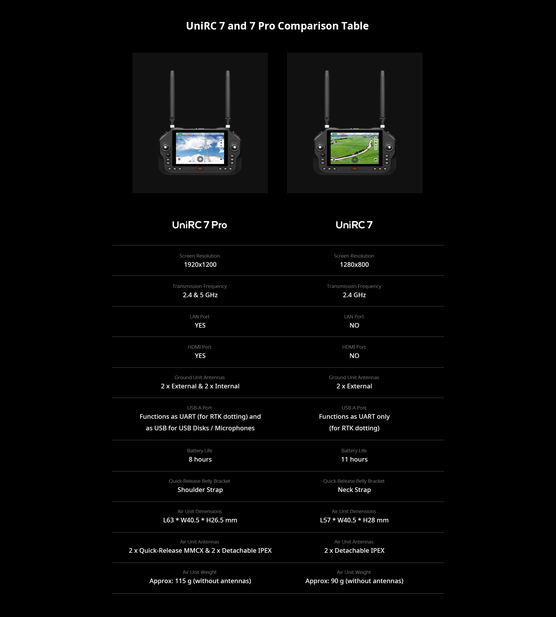 | Battery Life | UniRC 7 Pro: Approx 8 hours |