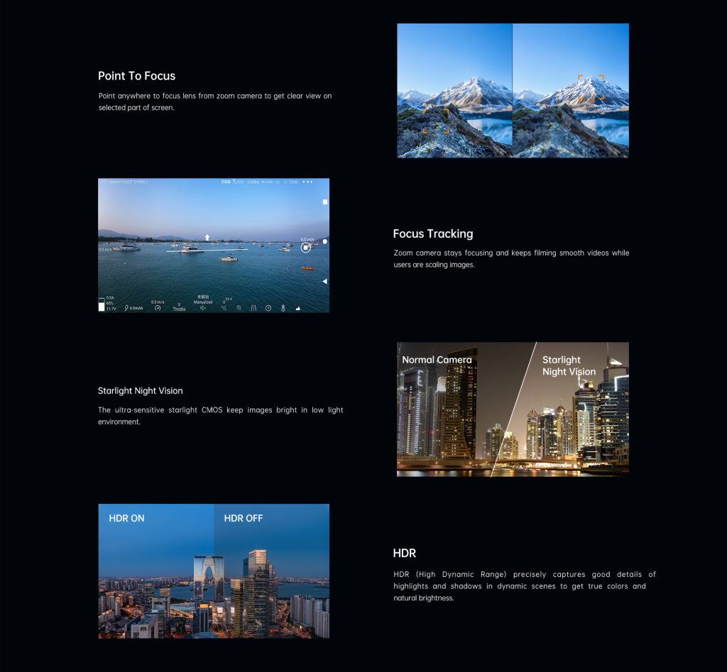●Up to180x hybrid zoom (30x optical zoom. The scenery is clear, the algorithm is fat and acurate, and the viewpoint is automaticaly focused, making it easy to producegrand pictures. Silky movement, smooth zoom, distant scenery, now within reach