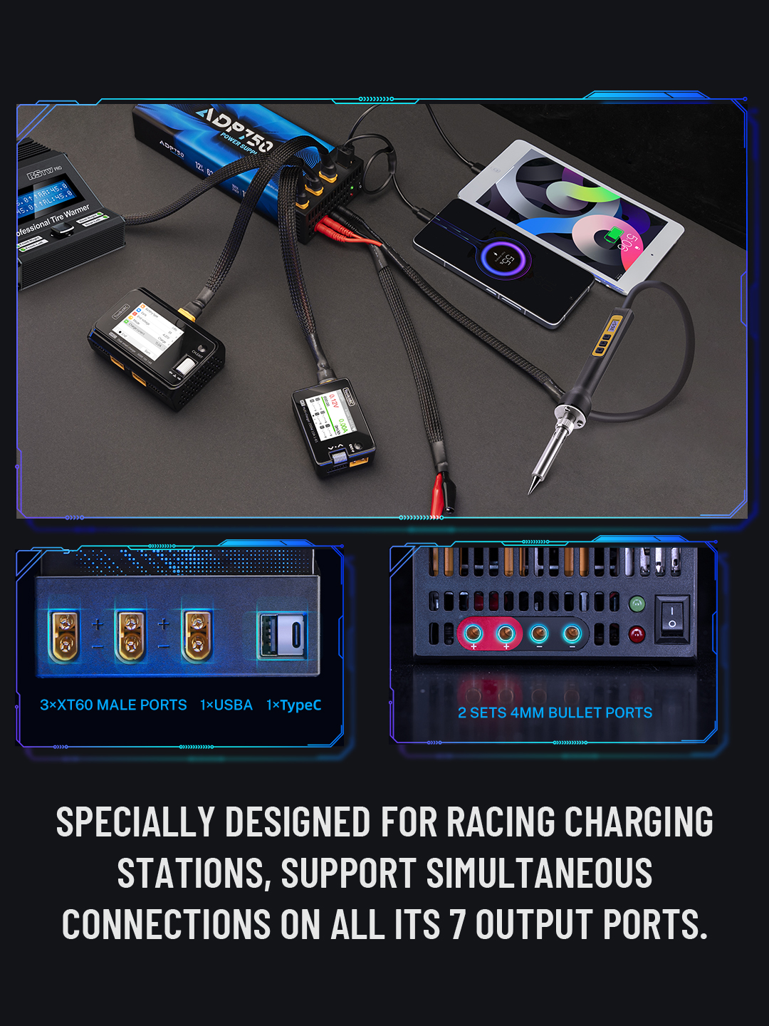 Connector | 1×TypeC, 1×USBA, 3×XT60 male ports 2×4mm bullet port sets |