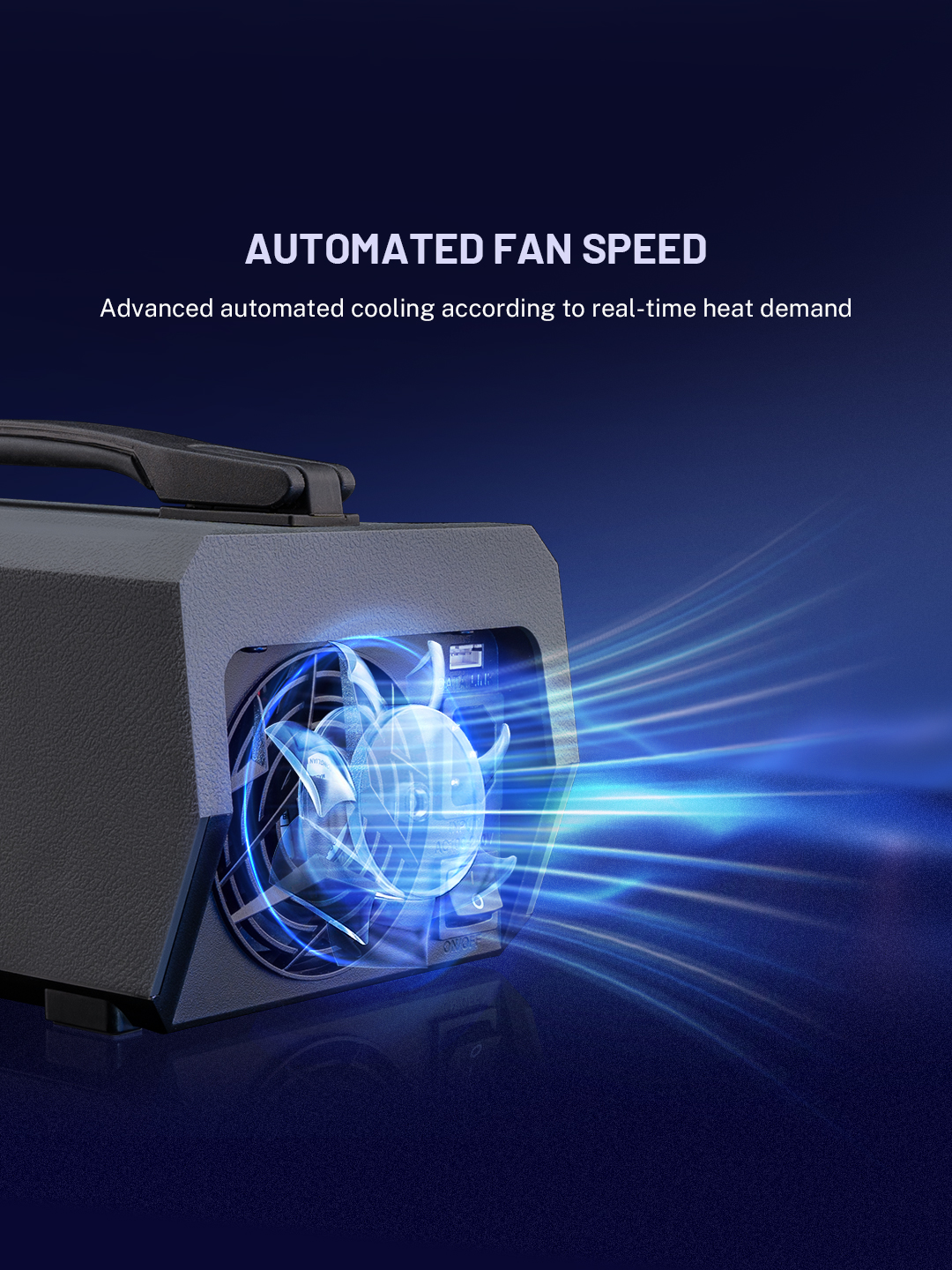 • Automated fan speed, Advanced automated cooling according to real-time heat demand.