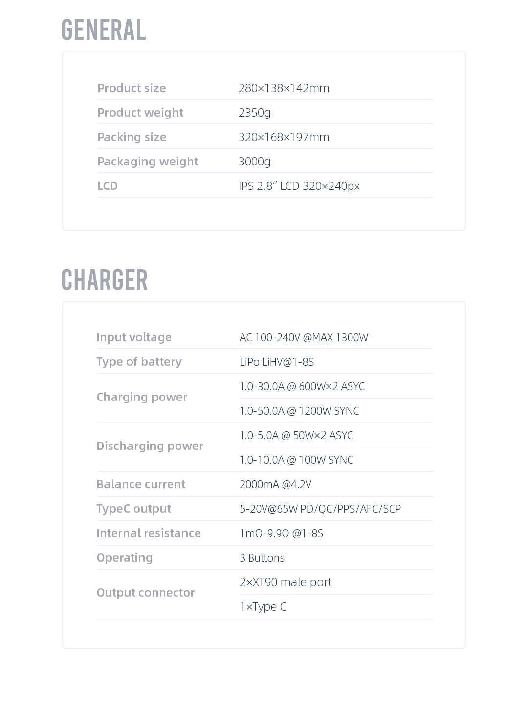 For 1~8S LiPo LiHV Battery, Charge, Storage, Discharge