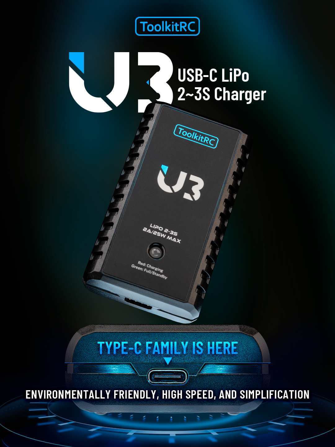 ToolkitRC U3 USB-C LiPo 2~3S Charger