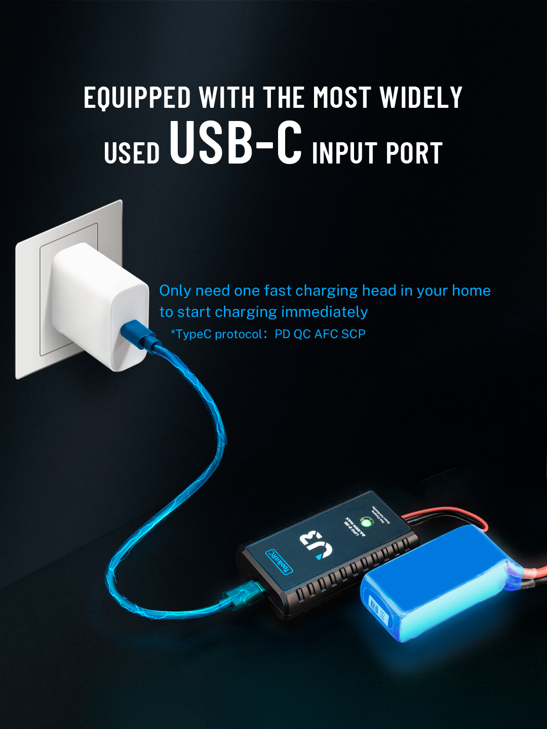 Only need one fast charging head in your home to start charging immediately.