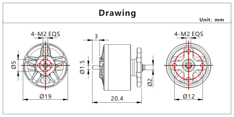 Ø1.5mm outlet shaft, all conventional propellers on the market can be adapted;