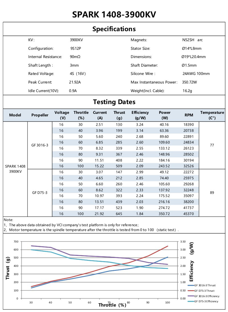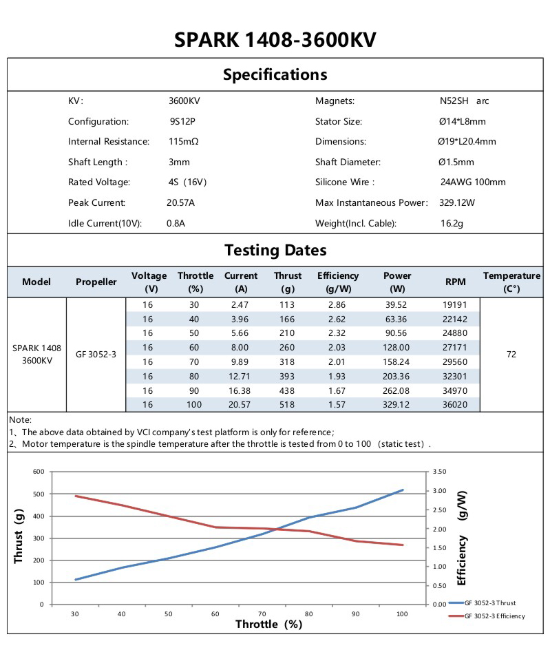 The VCI SPARK1408 motor uses Japanese original double ball bearings, which makes the motor run with less resistance, higher efficiency, faster response, and enhances the fun of flying;